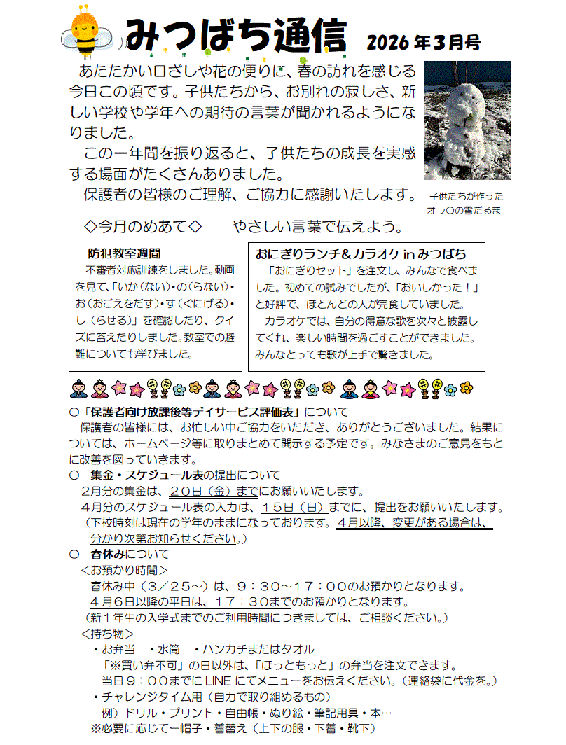 こちらのページでは主にみつばち通信を公開していきます。これからもよろしくお願いします。